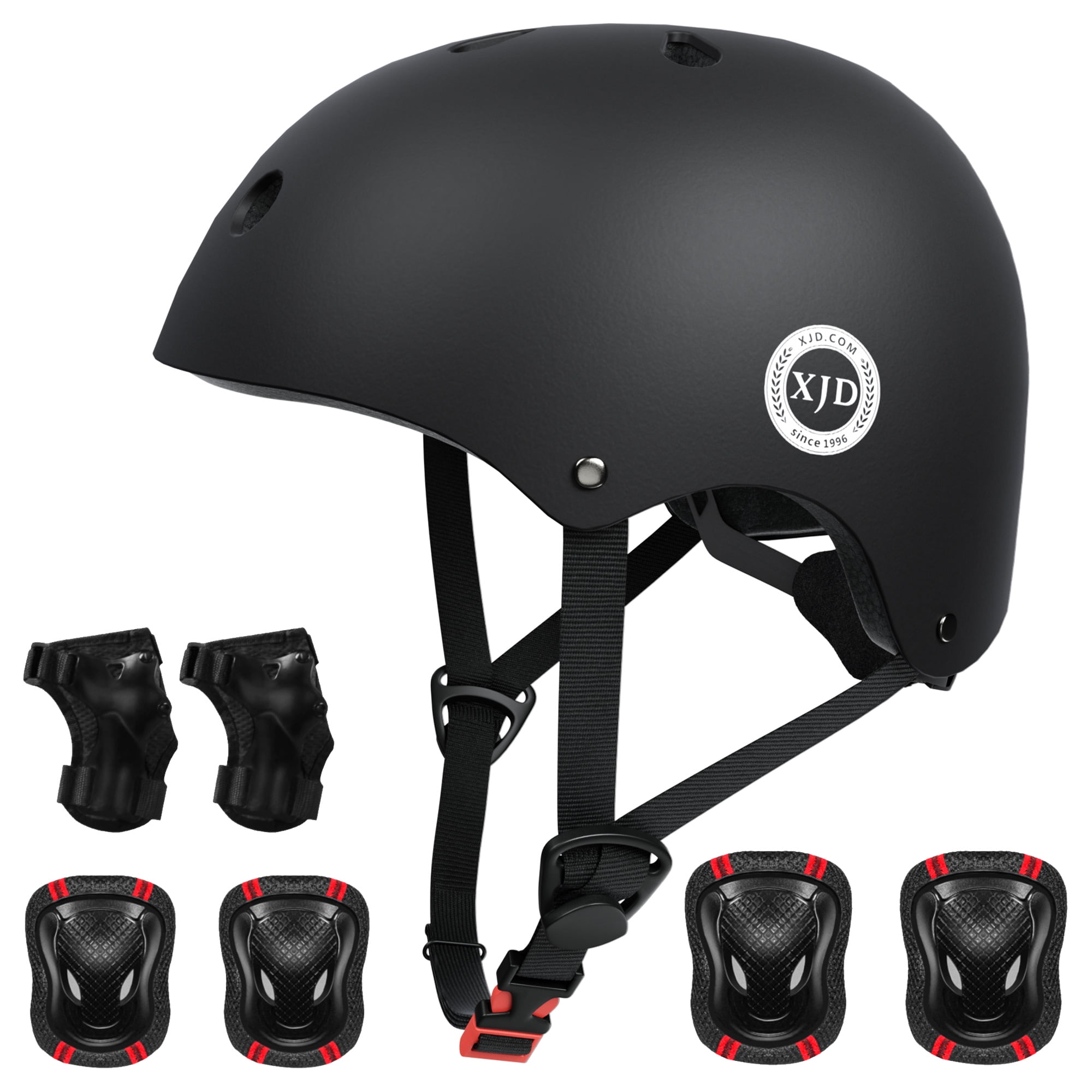 Xjd Kids Helmet 8 13 Years Boys Girls Adjustable Sports Protective Gear Set Black M Walmart Com
